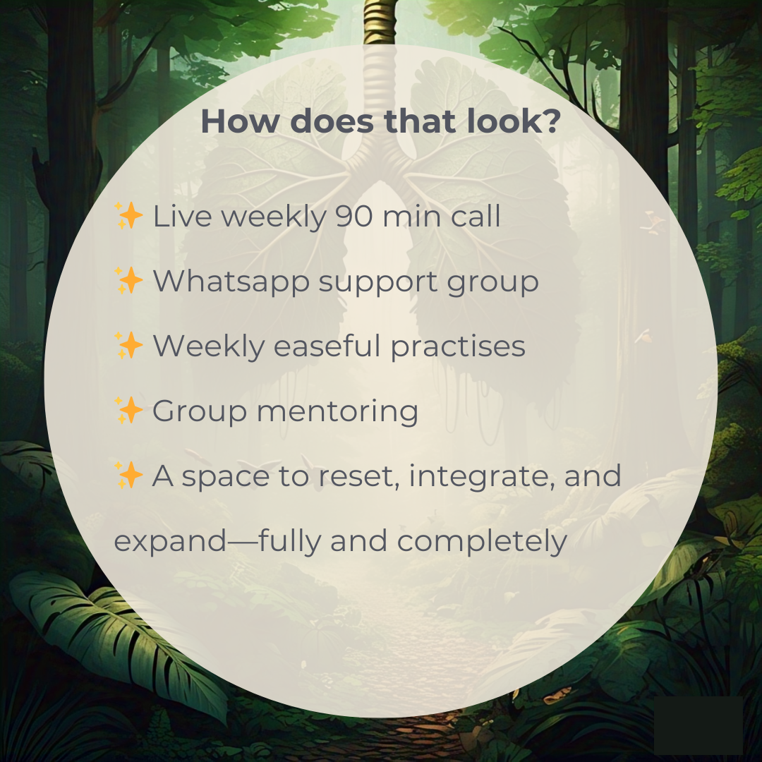 You are a woman, which means you are an incredibly powerful being by birth right. This truth has been stripped away from us, as we've been trying to exist in a patriarchal world where pushing and striving and doing more are how we win. Here we are relearning, repatterning our breath, reconnecting to our magic and finding out how we can be more powerful from a place of deep presence that breathing well brings.